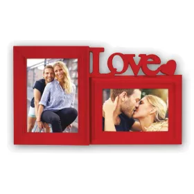 Κορνίζα επιτοίχια πλαστική, τεσσάρων θέσεων, οι δύο είναι σε σχήμα καρδιάς, επιγραφή Home σε γκρι χρώμα , μεγέθους 35,5x2,5x26,5 cm